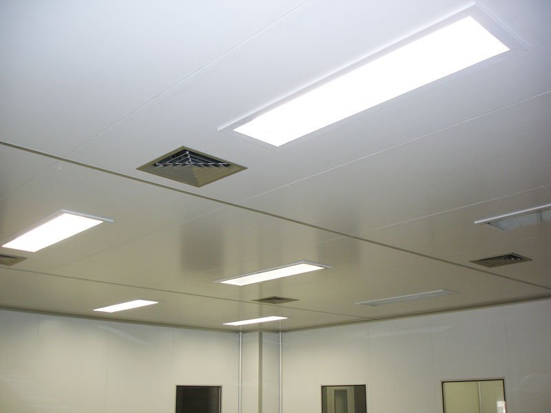 Divisórias em Painel PIR A estrutura das divisórias em painel PIR (poliisocianurato) é o coração da arquitetura de uma sala limpa. Elas oferecem isolamento térmico superior, resistência ao fogo, superfície lisa e não porosa — ideais para ambientes onde a limpeza e o controle de partículas são fundamentais. A Divinal é especialista em cortes e encaixes precisos, evitando frestas, rebarbas ou pontos de contaminação. Com mais de três décadas de experiência, dominamos a aplicação dos painéis com técnicas que garantem vedação hermética, perfeita fixação e alto padrão de acabamento, sempre de acordo com as normas da ANVISA, ISO e GMP. Cada projeto é executado com precisão milimétrica e acabamento clínico.